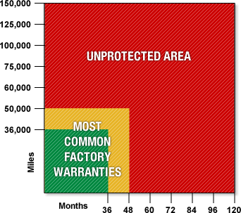 Your manufacturer’s warranty is very comprehensive. It covers virtually every part of your vehicle and can help prevent you from paying expensive repair bills. One problem, it ends! And, when it does, you are exposed to the costs of unexpected and expensive auto repair bills.